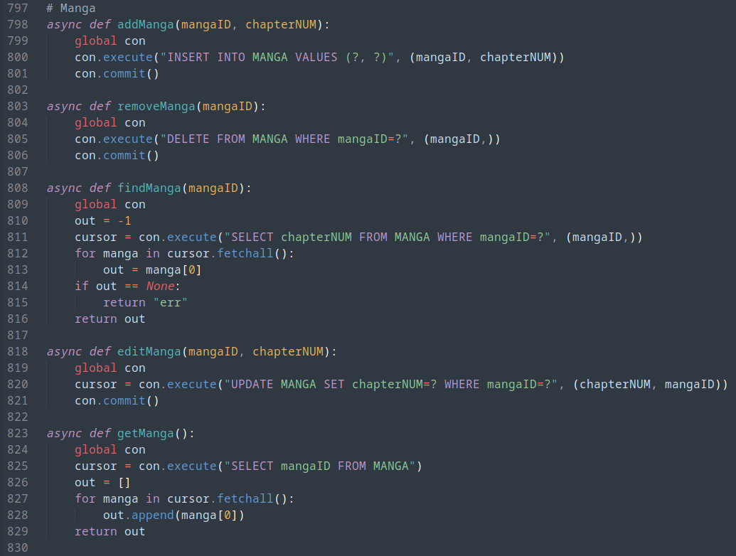 These functions are all called within manga_timer(), and are the functions used by MiniBot to maintain its database