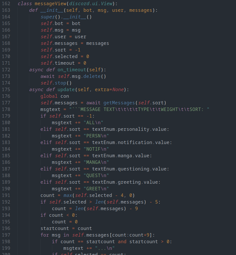 This file stores all of the functions that MiniBot needs to successfully function. The only non default libraries called are the Discord.py library, and sqlite3 which is used for connecting and maintaining MiniBot's database. There are also two Discord Views in this file, which are the classes used by MiniBot to create the menus used to modify it's database through UI instead of code.
