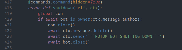 This command completely shuts down RotomBot, but can only be called by me, its one true master >:)