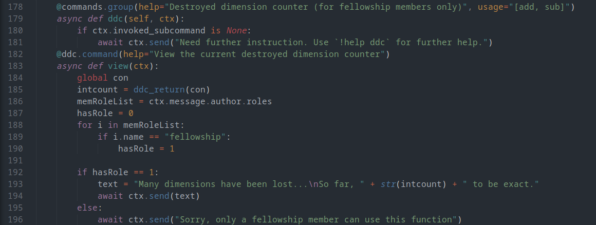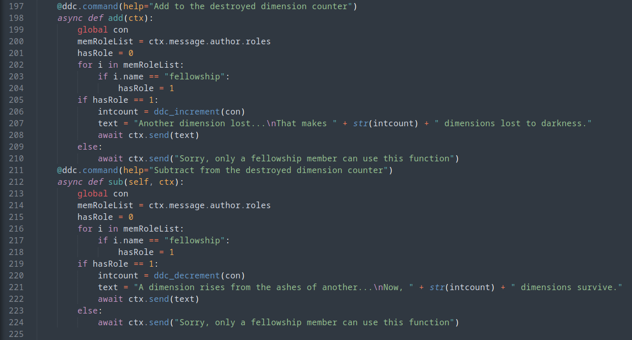 These are the two functions that add and subtract from the DDC, as long as the user has the `fellowship` role in the server.